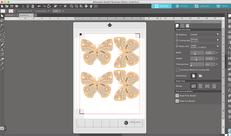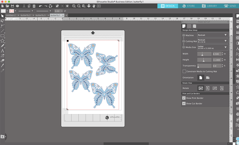 Stap één: vlinderontwerpen instellen in Silhouette Studio®
